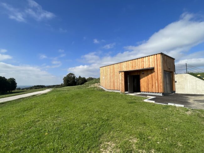 An einem besonders idyllischen Ort mit grandioser Aussicht entsteht gerade unser neuer Hochbehälter in Knieparz ob der Leithen in der Gemeinde Stroheim.